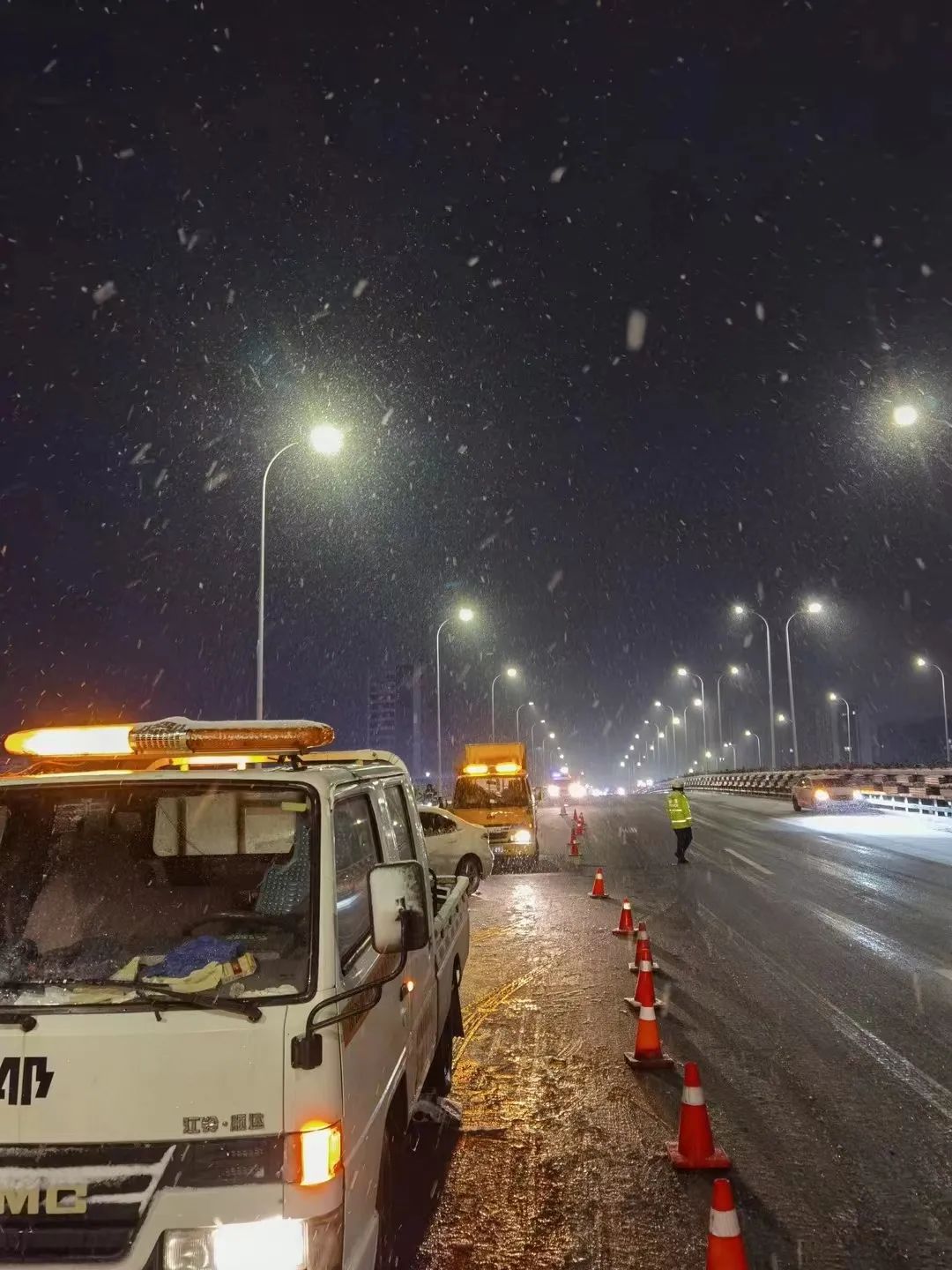 安邦施救公司对施救车辆加装防冻液,检查车辆状况,施救员做好自身防寒抗冻工作。现场作业时,使用更多的警示柱装置来扩大警示范围,提醒过往车辆,确保施工现场安全。所有施救员及施工员穿戴雨衣、雨靴和反光背心,以保障在恶劣天气中仍能保持良好的可视性和个人安全。