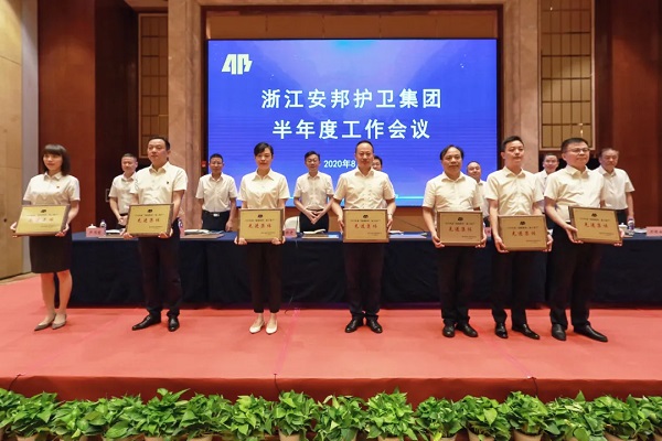 8月4日、5日,安邦护卫集团召开2020年半年度工作会议,回顾上半年工作情况,研究部署下半年重点工作。集团党委书记、董事长吴高峻出席会议并作半年度工作报告,党委副书记、总经理诸葛斌主持会议。集团党委副书记、董事余兴才宣读了关于表彰集团抗疫、复工复产及防汛抗洪工作先进集体和个人的决议。集团党委班子全体成员、监事会成员出席会议。各子公司领导班子成员,集团总部各部室负责人参加会议。