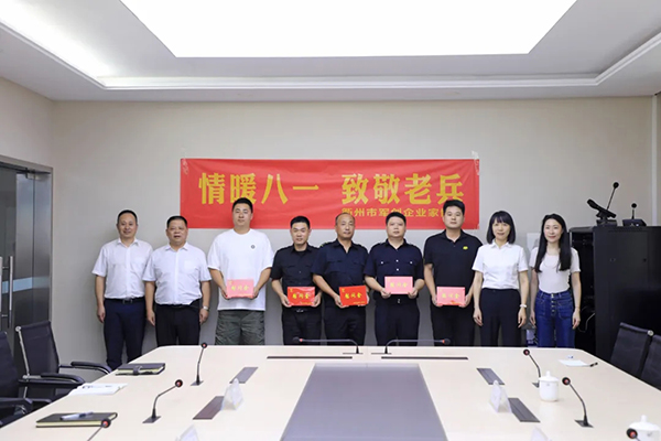 7月30日,衢州市退役军人事务局党组成员、副局长郑国平,服务中心主任王冲,衢州市军创企业家协会秘书长林璐一行来到浙江衢州安邦护卫有限公司,关心关爱退役军人,并送上慰问金和慰问品。公司党委书记、董事长、总经理张淑芬,党委副书记、纪委书记、工会主席马洪庆,党委委员、副总经理宋俊强以及优秀退役军人代表参加座谈。