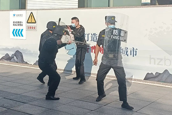 精准培训提技能 织密“安全网”。为切实提高保安队员的应急处置能力,安邦保安公司联合一中、求益中学、白云学校、亭川幼儿园、衢州中专、杭州银行等多家服务单位开展防爆技能培训和应急演练,进一步提升保安员突发情况快速反应、高效应对、稳妥处置的能力,用过硬的技能素质守护驻点单位安全。