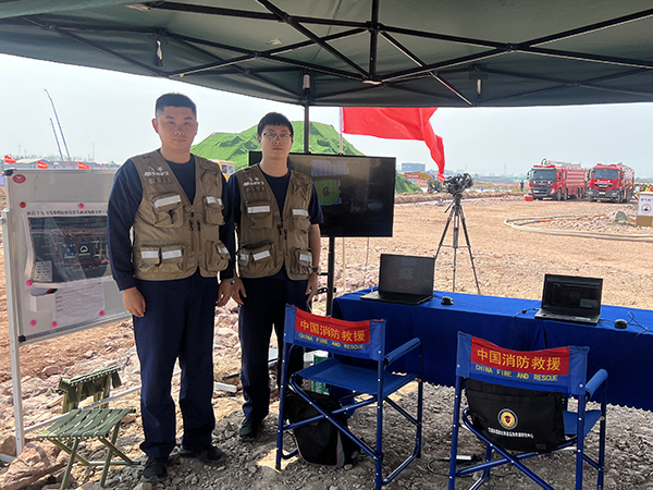 为增援金华,安邦通航智能科技(衢州)有限公司派出6名技术人员,携带无人机及挂载、机器狗、高喷车边缘计算单元、现场指挥大屏及各类配套通信装备前往。