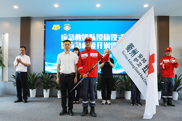 携手公益,共建共享!衢州安邦护卫和衢州市先锋红十字应急救援队举行签约授旗仪式暨开训仪式
