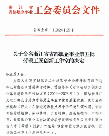 近日,浙江省省部属企事业工会发布《关于命名浙江省省部属企事业第五批劳模工匠创新工作室的决定》,命名70家单位为省部属企事业“劳模工匠创新工作室”称号,浙江衢州安邦护卫有限公司安邦通航浙江工匠创新工作室位列其中。