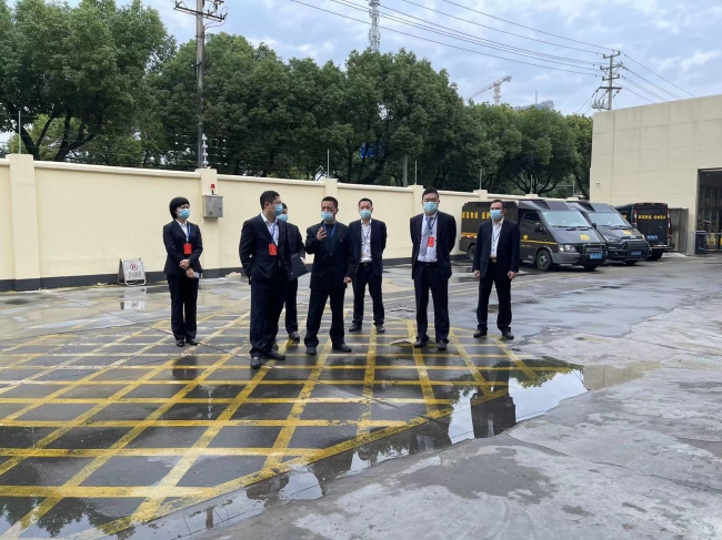 裘峰一行来到慈余金库,重点考察了现金库、交接区、清分场所等区域,并针对各区域运行模式及作用进行了询问,唐建科逐一介绍。