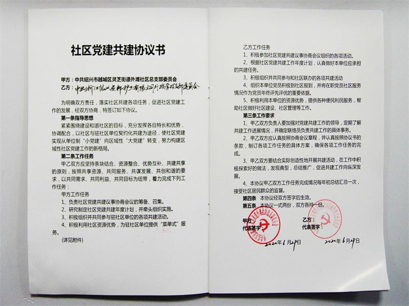 在推进会上,公司与外滩社区签订党建共建协议,此份共建协议,涵盖基层党建、健康生活、助老助残、教育培训、绿色环保、文体活动等面向全体居民服务项目。