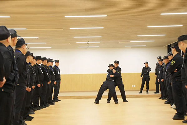 实操教官从徒手防卫与控制、枪支使用及管理、应急处置等方面进行教学,分步骤演示动作要领,组织学员对所学技能进行实战操练,及时纠正指导不规范的动作,全面提升队伍实战能力。此外,集训营还搭配晚间体能训练,助力提升学员身体素质。