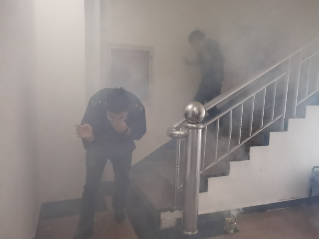 下午15:10分,随着警报声响起,演练正式开始,参演人员迅速冲出宿舍,沿既定路线撤离,仅用一分半钟时间全部在楼下集合,达到了预案要求。