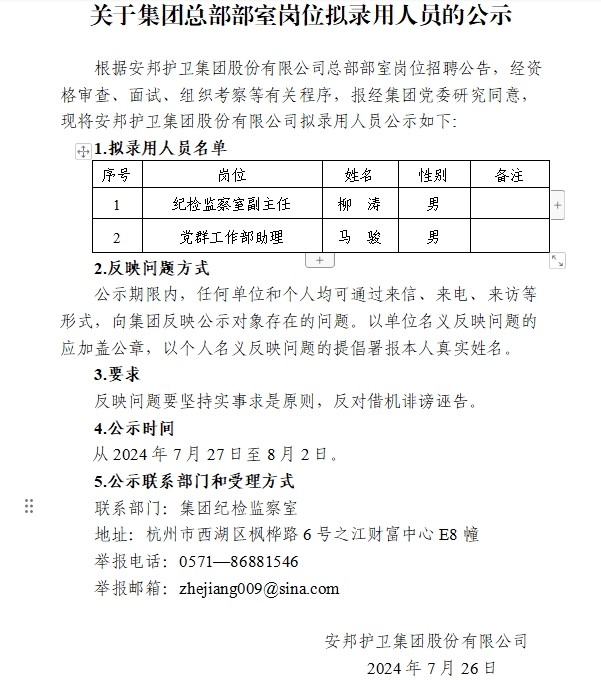 上一篇:安邦护卫集团股份有限公司关于ISO体系母子认证(再认证)采购项目公告