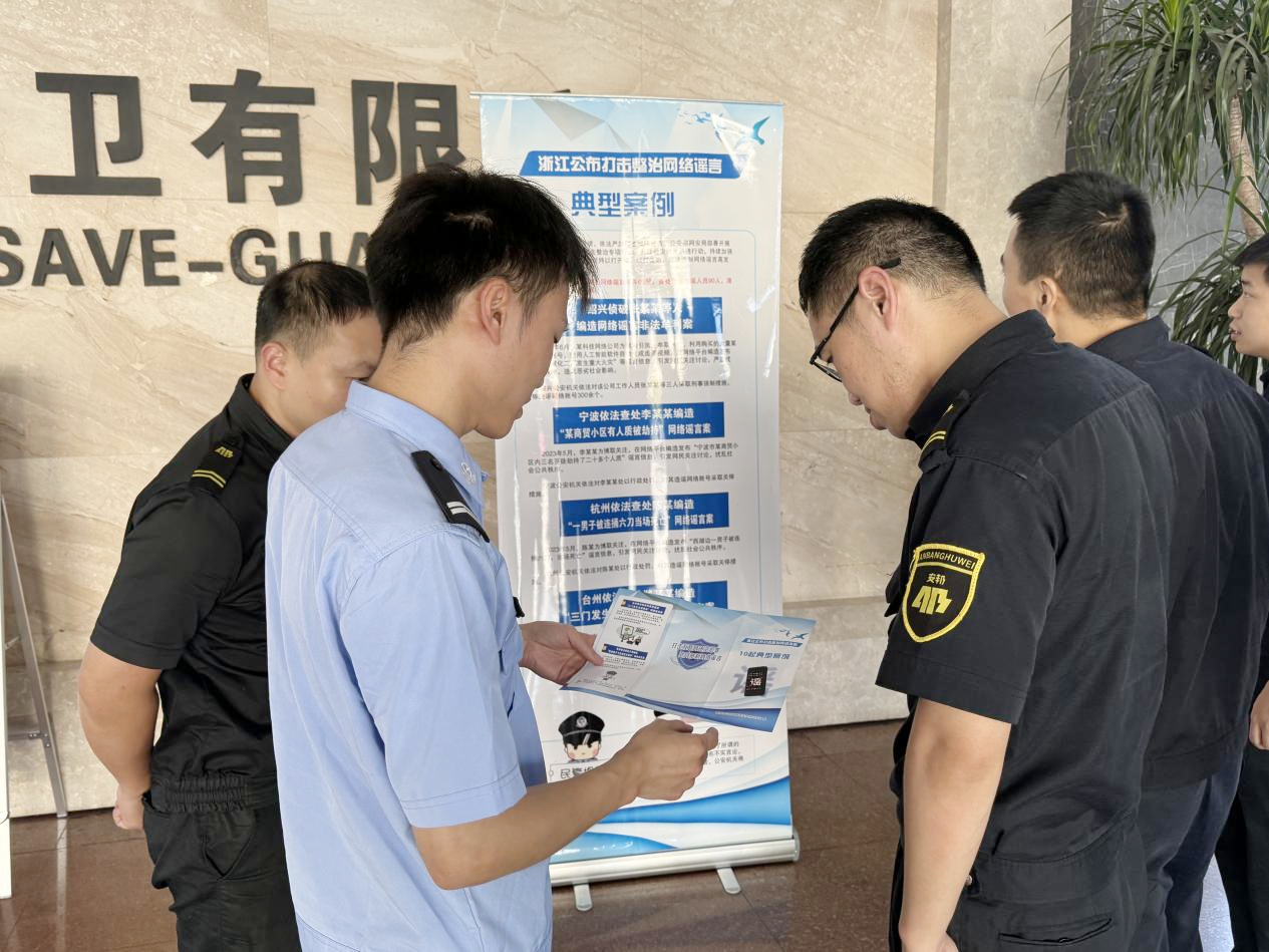 为进一步营造清朗网络空间,建设安全网络环境,传播文明上网理念,近日,浙江衢州安邦护卫有限公司同衢州市公安局柯城分局网警大队、荷花派出所开展“打谣宣传进企业”宣传活动。