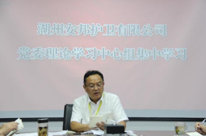 8月10日下午,湖州安邦护卫公司党委书记莫继权同志主持召开党委理论学习中心组专题学习会,集中传达学习集团公司《关于认真学习贯彻习近平总书记重要指示和省委十四届三次全会精神的通知》相关文件精神,深刻领会和全面把握重要指示的重大意义和十四届三次全会的精神实质,党委理论学习中心组成员、各部门、大队主要负责人参加会议。