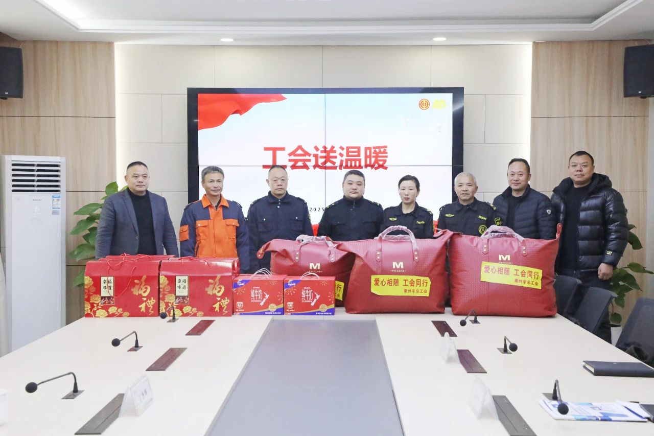 1月9日上午,衢州市总工会党组成员、副主席刘新辉一行来到浙江衢州安邦护卫有限公司,开展“送温暖”慰问活动并调研基层工会工作,公司党委副书记、纪委书记、工会主席马洪庆,保安公司工会主席金国飞陪同。
