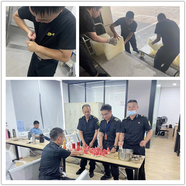 鼓风机和大冰块摆入作业地,冰柜和冷饮放进库房区,绿豆汤和西瓜送到休息室......面对衣衫湿透的员工们,公司领导每天都为员工送去“夏日清凉”。