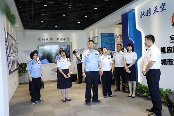 2022年8月1日上午,中国人民警察大学智慧警务学院院长马双成一行在衢州市公安局党委副书记、副局长黄忠京的陪同下来到浙江衢州安邦护卫有限公司考察交流无人机建设工作。