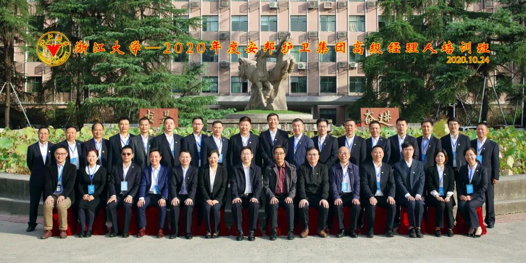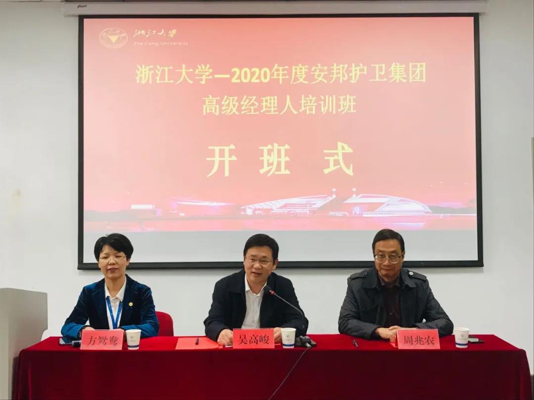 国有成均,在浙之滨。10月24日上午,安邦护卫集团2020年度高级经理人培训班在浙江大学开班。集团党委书记、董事长吴高峻 ,全国干部教育培训浙江大学基地副主任、浙江大学继续教育学院副院长兼纪委书记周兆农出席开班仪式并讲话。