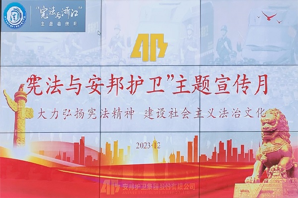 2023年12月4日是第十个国家宪法日。为全面贯彻党的二十大精神,深入学习贯彻习近平新时代中国特色社会主义思想特别是习近平法治思想,弘扬宪法精神,根据《安邦护卫集团股份有限公司“宪法与安邦护卫”主题宣传月暨2023年“12·4”国家宪法日活动方案》等文件精神和部署要求,集团紧扣“大力弘扬宪法精神,建设社会主义法治文化”主题,开展了宪法宣传月主题活动。