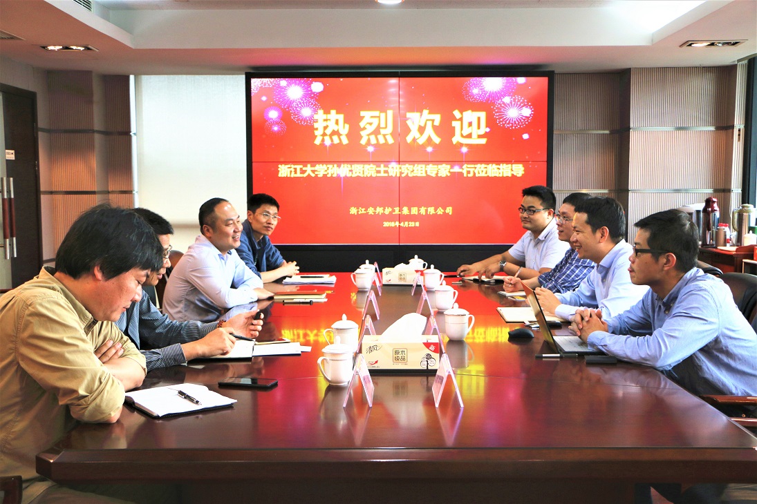 4月23日,浙江大学孙优贤院士研究组专家陈积明教授一行来公司调研交流。集团公司党委副书记、董事、总经理诸葛斌出席座谈交流会。