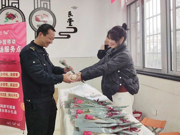 活动现场,工作人员为员工详细解答,提供办新卡、更换套餐、携号转网等便民服务,还贴心地送上玫瑰花,实现小窗口大服务。“平时跑外线,很少有时间去移动营业厅,这次公司直接请中国移动送服务上门,话费套餐也能打折,确实提供了不少实惠和便利,点赞!”