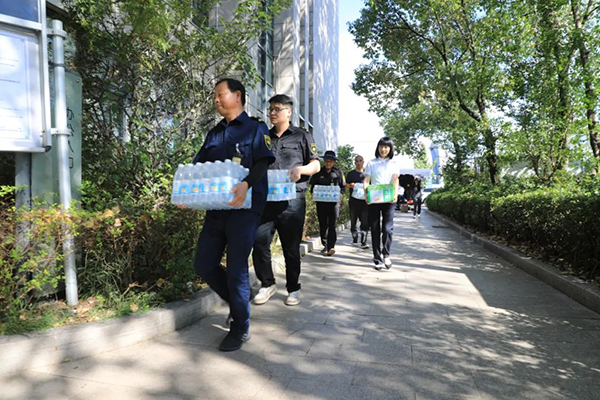 慰问组一行先后来到考服公司、施救公司、检测公司、中心金库、公司食堂、巨化集团安保项目、市人民医院安保项目等地,将清凉物资送到高温一线干部员工手中,并向辛勤工作的一线员工表示亲切的慰问,询问大家的工作状况,叮嘱在高温天气下要注意防暑降温,合理安排工作与休息时间,确保身体健康和安全生产两不误。
