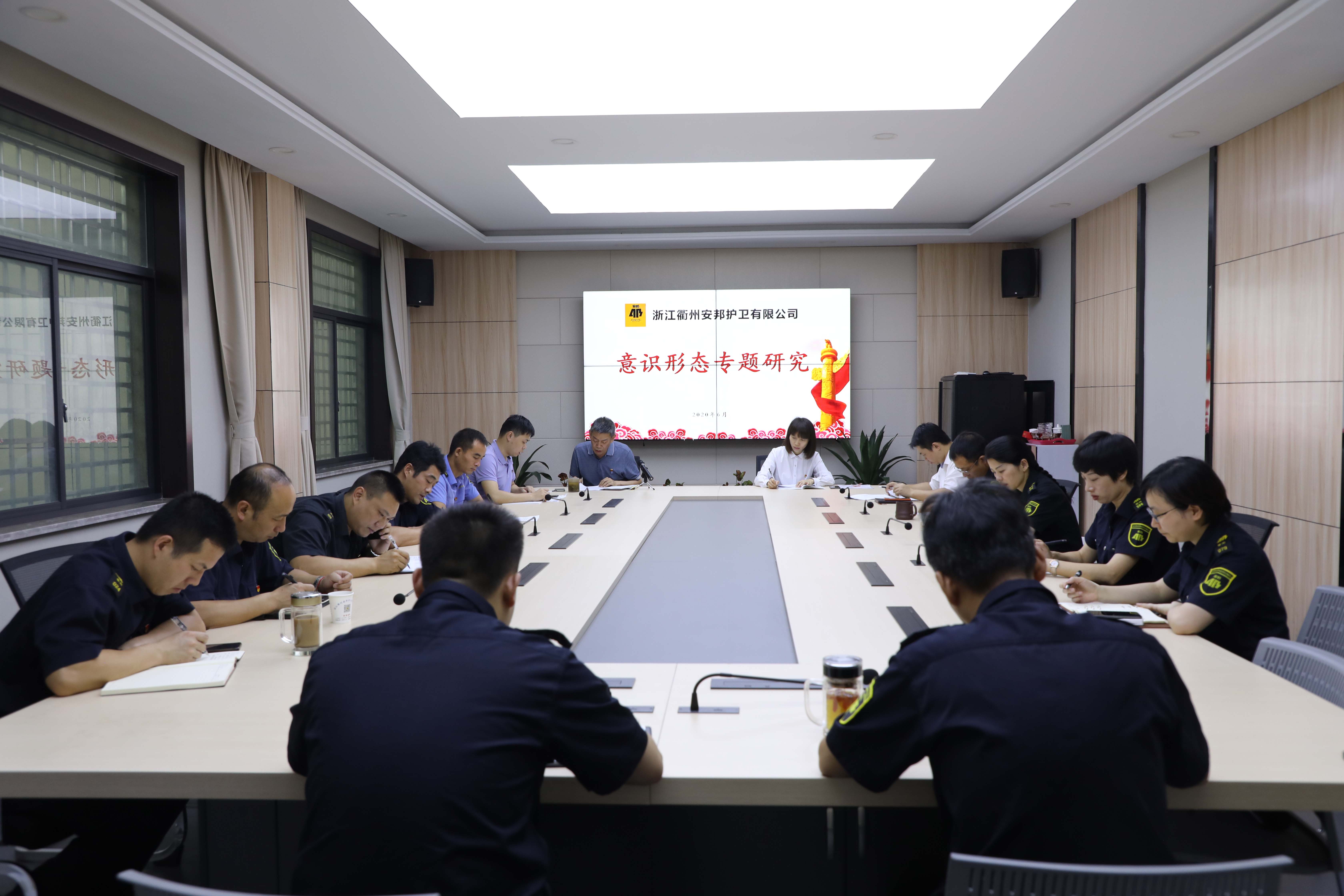 6月5日上午,浙江衢州安邦护卫有限公司党委召开全国“两会”精神学习暨意识形态专题研究会议。公司党委班子、中层副职以上管理人员及支委委员参加会议。