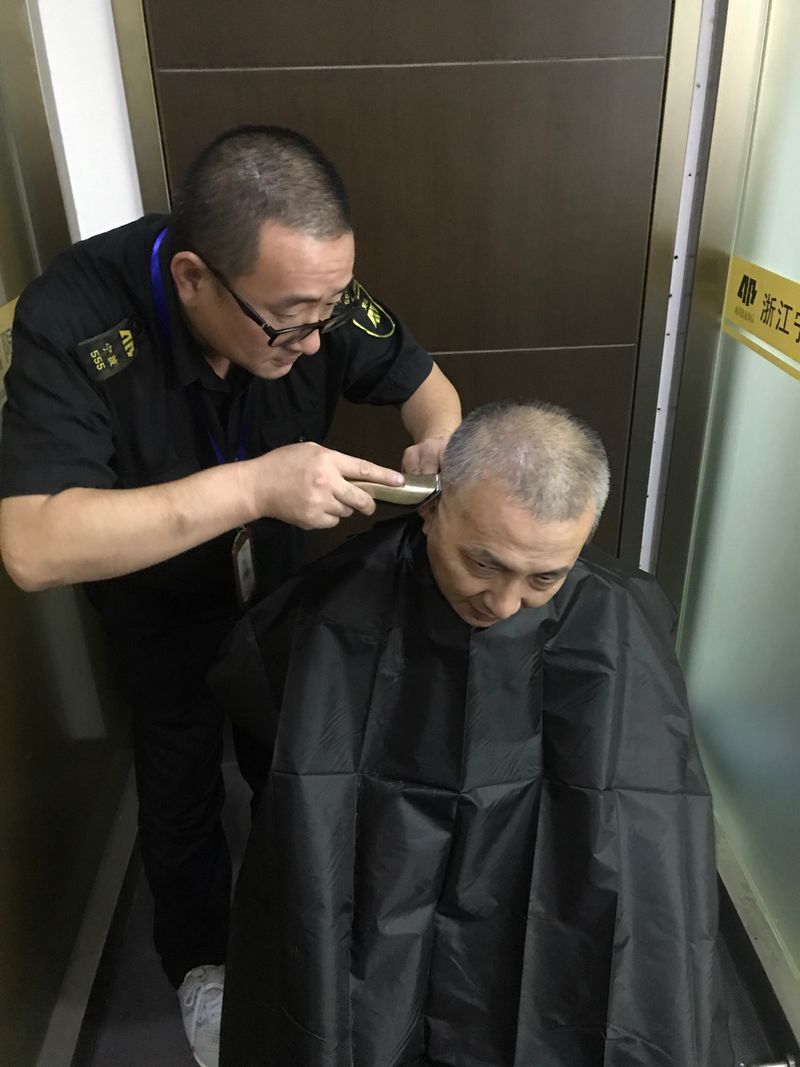 9月17日,宁行大队开展免费理发一日活动,由具备一定理发经验的二中队副中队长佘洪永担任理发师,为大队员工免费理发。