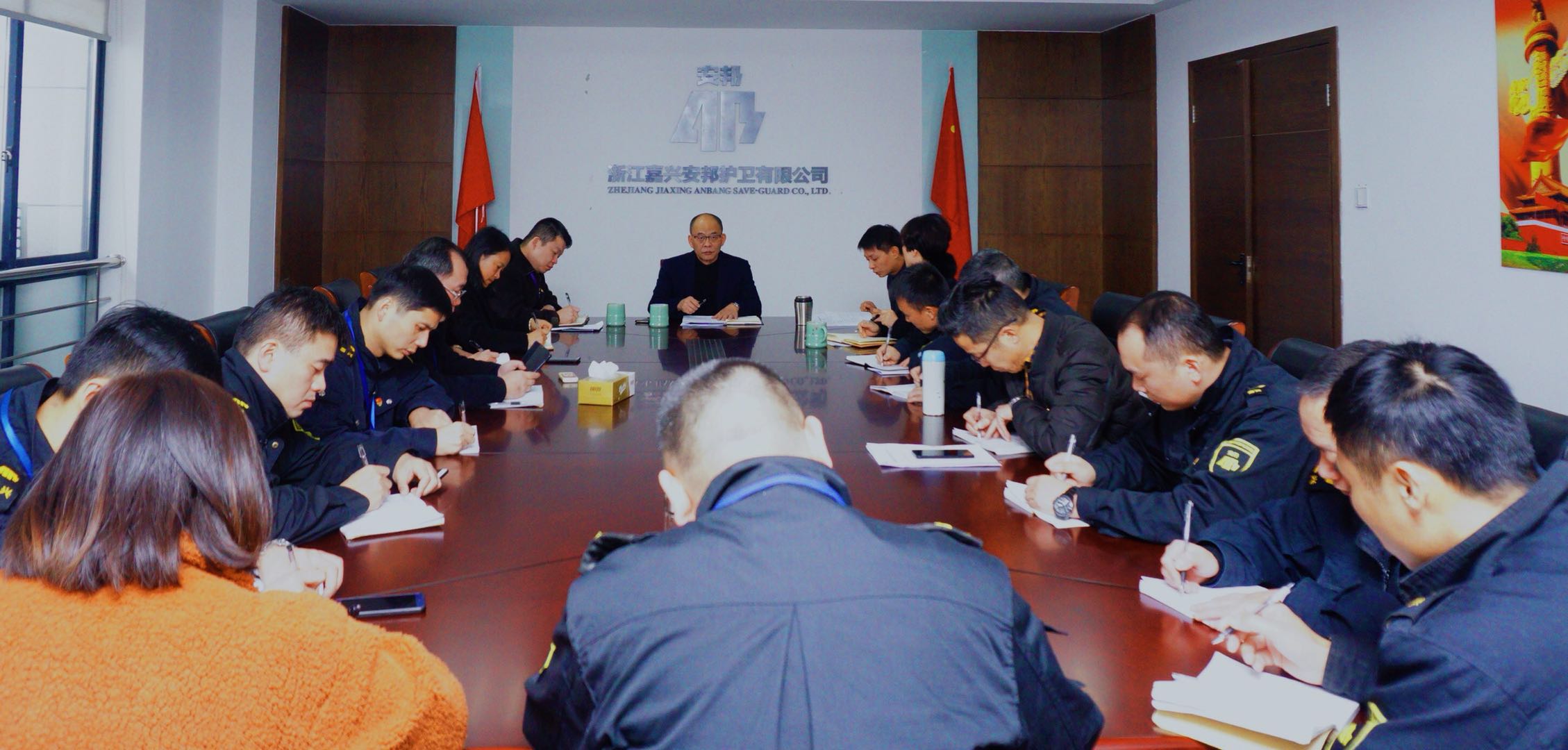 12月13日下午,浙江嘉兴安邦护卫有限公司召开四季度党委理论学习中心组会议,会议由公司党委副书记、副总经理徐涯立同志主持,党委班子、副大队长以上管理干部、团委书记参加会议。
