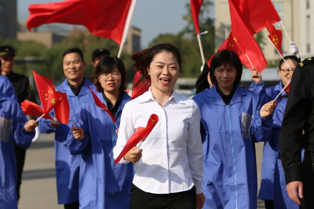 “我们的道路多么宽广,我们的前程无比辉煌,我们献身这壮丽的事业,无限幸福无上荣光……”队员们挥舞着鲜艳的小红旗,自信幸福的笑容洋溢在脸上,激情奋进的歌声在整个园区回荡。