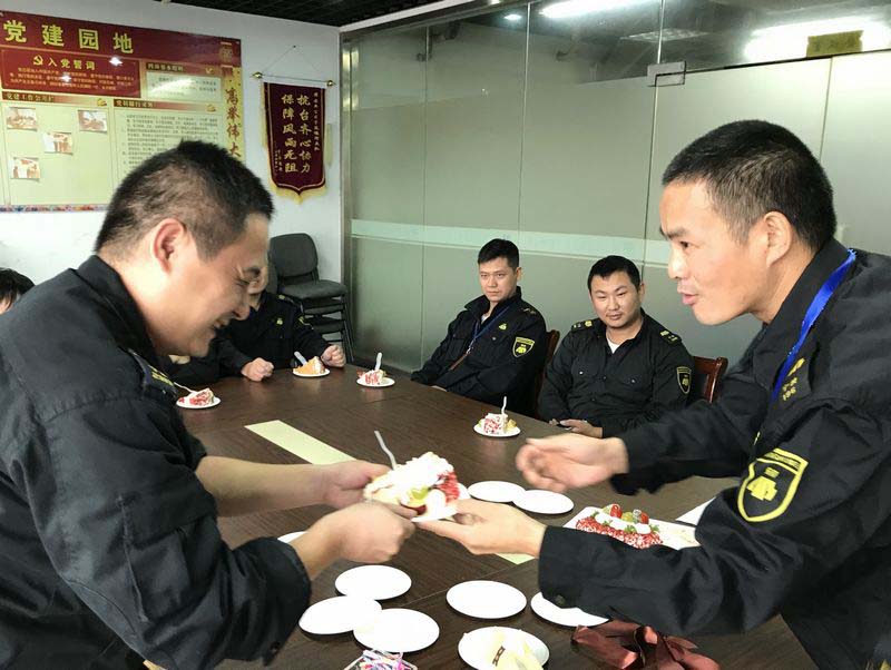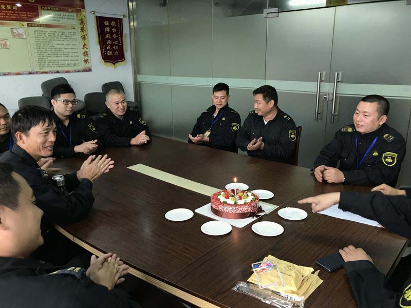 在公司引领下,大队十分注重企业文化建设,坚持以人为本的理念,关心队员工作生活,为队员建立生日档案,生日提前准备精美的生日蛋糕,员工们颇感欣喜,“安邦公司的关怀让我们感受到大家庭的温暖”。看似小活动,却表达了大队对队员的关怀,体现了队员的人生价值,对提高队员的凝聚力、向心力,提高队员的工作积极性,不失为一良策,这也是提倡公司文化、实施人性化管理的一个举措。