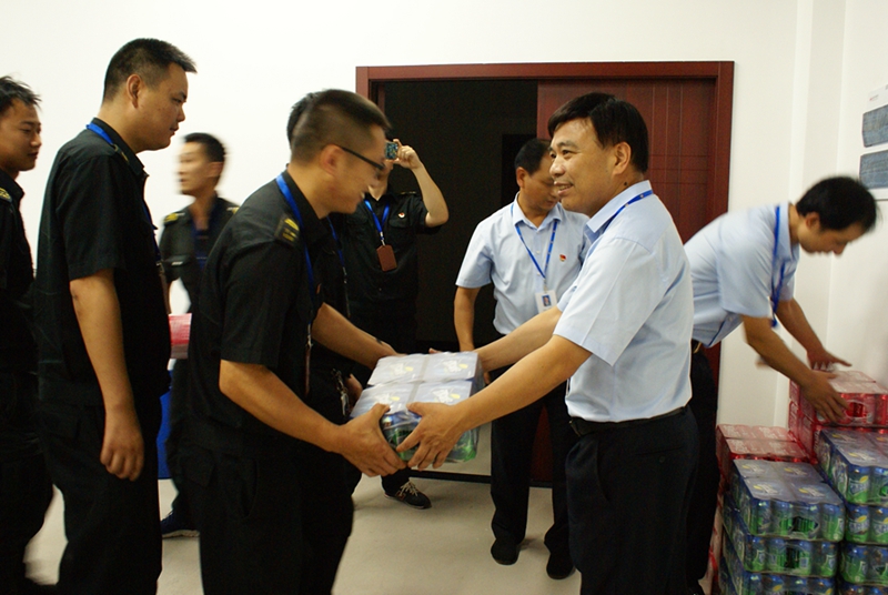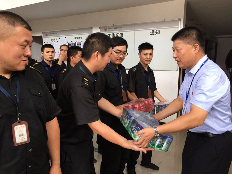 与此同时,公司班子成员分别来到各大队进行走访慰问,将一瓶瓶的清凉饮料、一袋袋的夏令用品,连同公司的关怀送到员工的心坎上。近日起,江北基地食堂按照公司“战高温送清凉”活动部署,每天下午免费向员工提供绿豆汤等解暑饮料,扎扎实实地为员工办好事、办实事,维护员工的身体健康,营造以人为本、关爱职工的良好氛围,确保高温季节守押服务工作的安全运行。