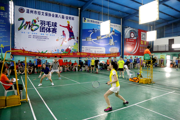 5月18日,由温州市公安局经文保协会主办,公司协办的“安邦杯”羽毛球比赛在友谊羽毛球馆拉开了帷幕,来自全市银行、学校、县区经文保协会的41个代表团共计240余位选手参加了本次比赛。