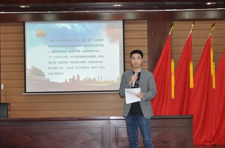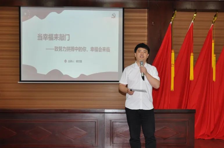 侯文磊以《当幸福来敲门--致努力拼搏中的你,幸福会来临》为主题,通过安邦这个大家庭中普通一员的成长经历来表达他们为打造一流的安邦品牌,提供一流的优质服务,实行一流的队伍建设而拼搏努力走向幸福生活。