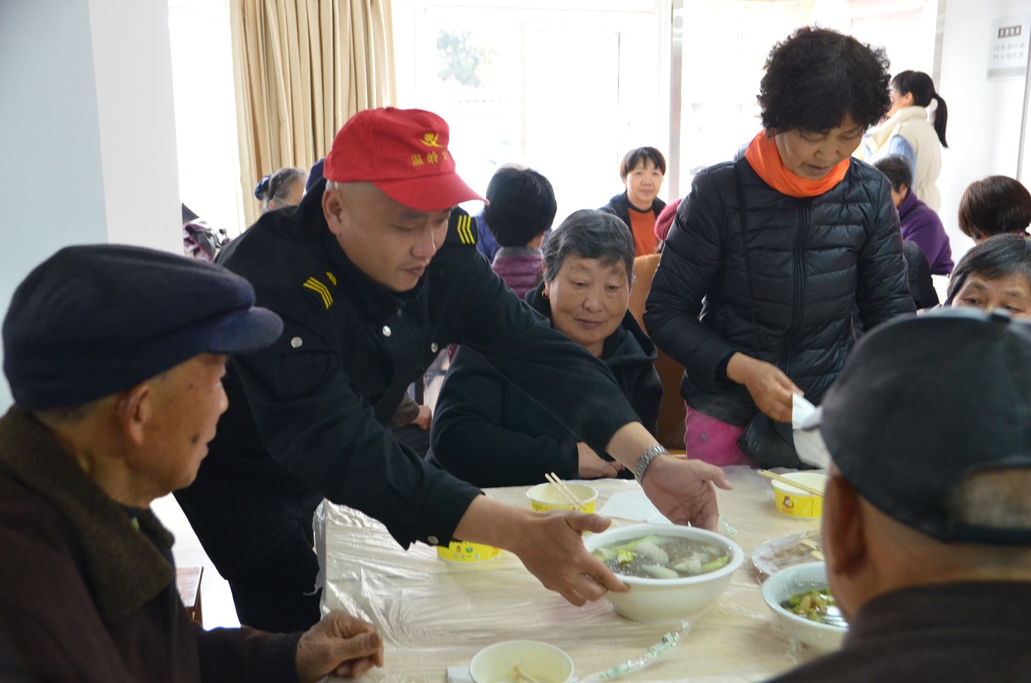 “平常都是我做菜给年轻人吃,想不到今天让年轻人为我们服务,还从未享受过这等服务,真是太感谢了”老人笑得合不拢嘴。老人们纷纷表示,平时看到银行门口的安邦人员总觉得威武严肃、不敢靠近,想不到他们还能“上得厅堂下得厨房“,有和善可亲的一面。
